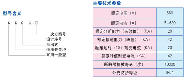 KDC3礦用一般型抽出式低壓開關(guān)柜適用于煤礦井下無瓦斯、煤塵爆炸危險(xiǎn)場所或其它類似的工業(yè)生產(chǎn)部門,對額定電壓至660V、額定頻率作為50Hz的三相交流低壓配電系統(tǒng)中作為動力、配電、照明、電機(jī)及其它電氣設(shè)備的起動、控制和保護(hù)的開關(guān)設(shè)備及電源變換設(shè)備。